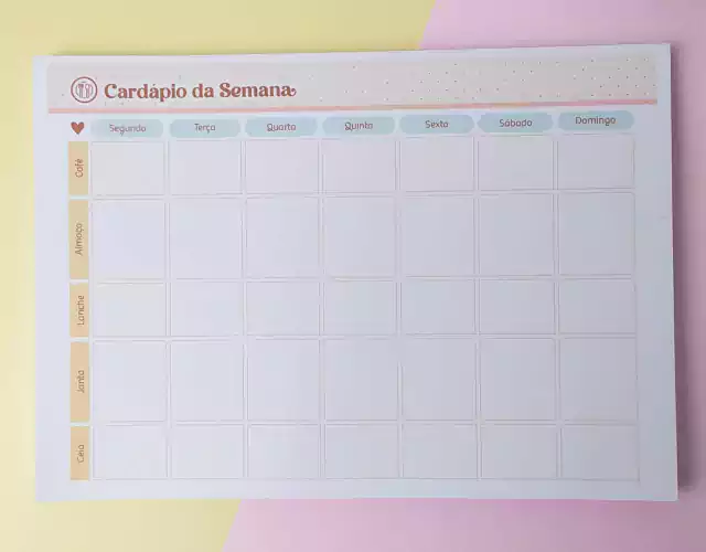 O Bloco Cardápio da Semana é perfeito para ta ajudar a planejar as refeições da semana!